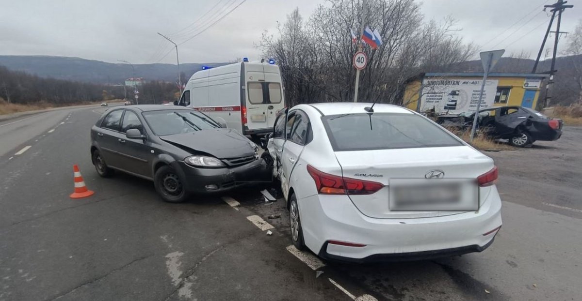 Днём водитель Hyundai Solaris ехал в сторону Североморска, разворачивался и не занял крайнее левое положение на проезжей части. Из-за этого он столкнулся с Chevrolet Klan. Водителя Hyundai осмотрели медики.