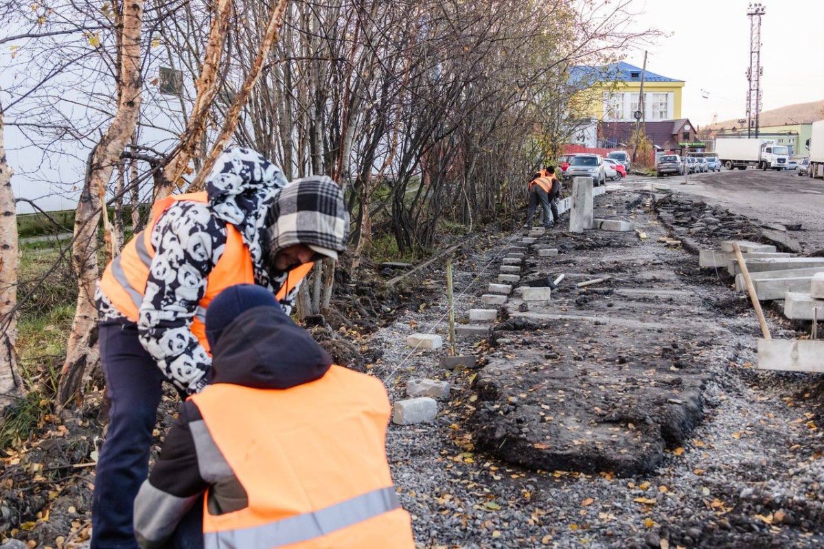 В Мурманске на улице Траловой, от дома № 2 до домов № 43, 45 строят пешеходную дорожку длиной полкилометра. Здесь уже установили диодные светильники по просьбе горожан. Сейчас идет укладка бортового камня и подготовка к отсыпке щебеночного основания, после чего новый тротуар закатают асфальтом.