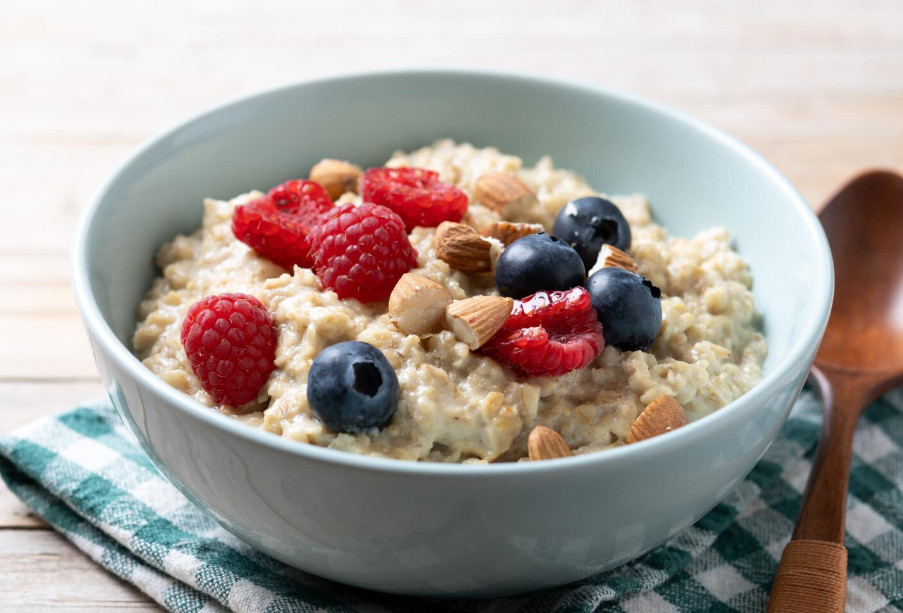 Овсянка — содержит клетчатку и антиоксиданты — это чистые артерии и защита от воспаления. Лучше не варить, а запаривать на ночь.