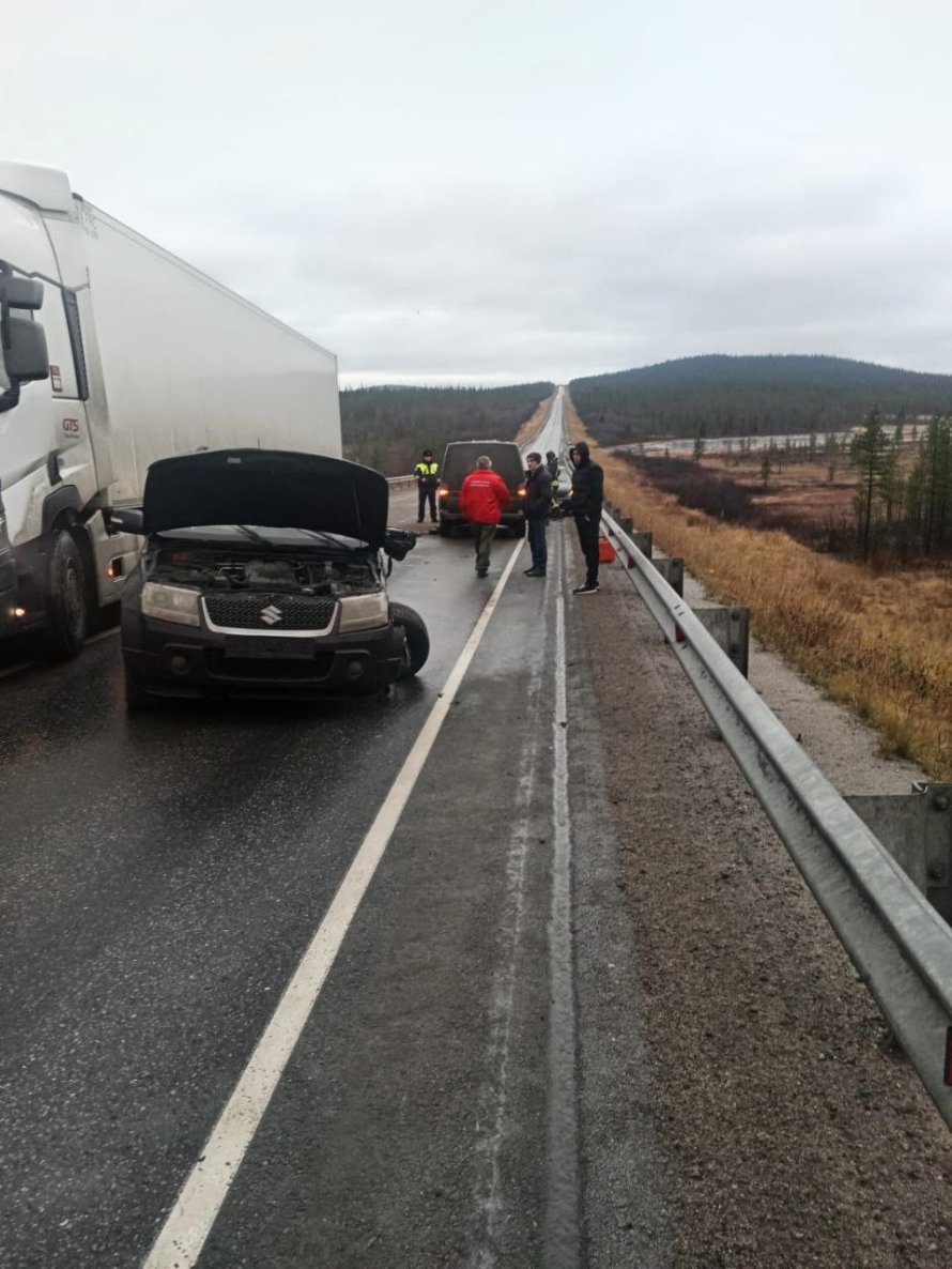 Автомобильная авария произошла на 1353 км автодороги Р-21 «Кола». Сообщается о лобовом столкновении и по касательной автомобилей Suzuki, Nissan Almera, Volkswagen и Lada Kalina.