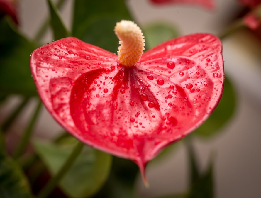 Здоровые листья и обильное цветение — результат пребывания в помещении с подходящей влажностью. Отлично, если она составит 70-80%. При необходимости можно поставить рядом с антуриумом увлажнитель.