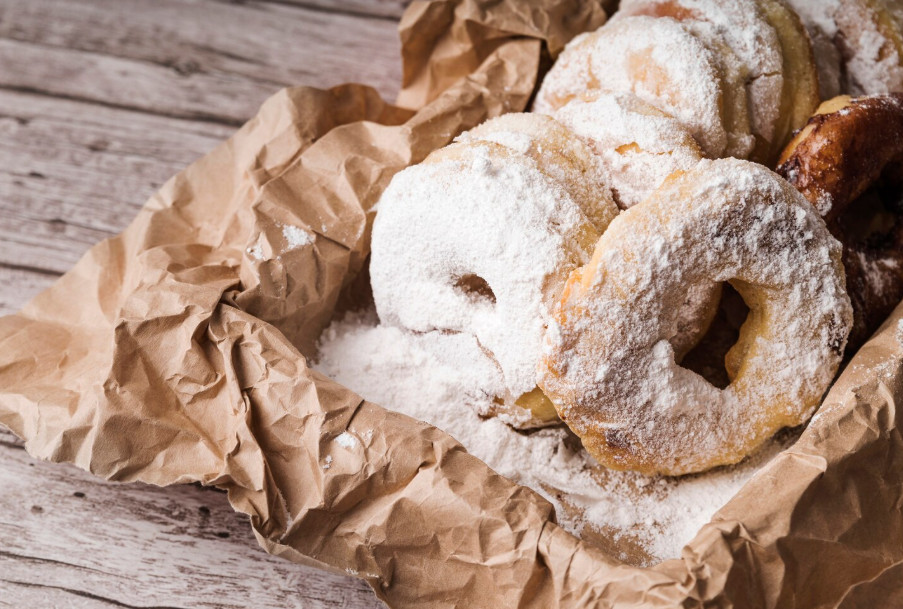 Горячие пышки обязательно посыпьте сахарной пудрой. Есть их лучше тёплыми, запивая ароматным чаем.