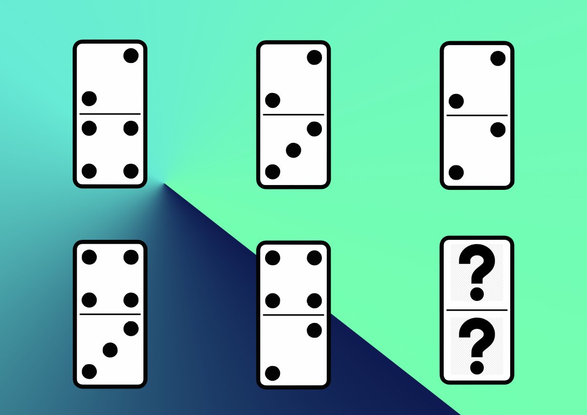 Итак, пред вами задачка с «потерявшейся» доминошкой. Условие простое: нужно понять принцип, по которому сформирована последовательность и найти упущенную.