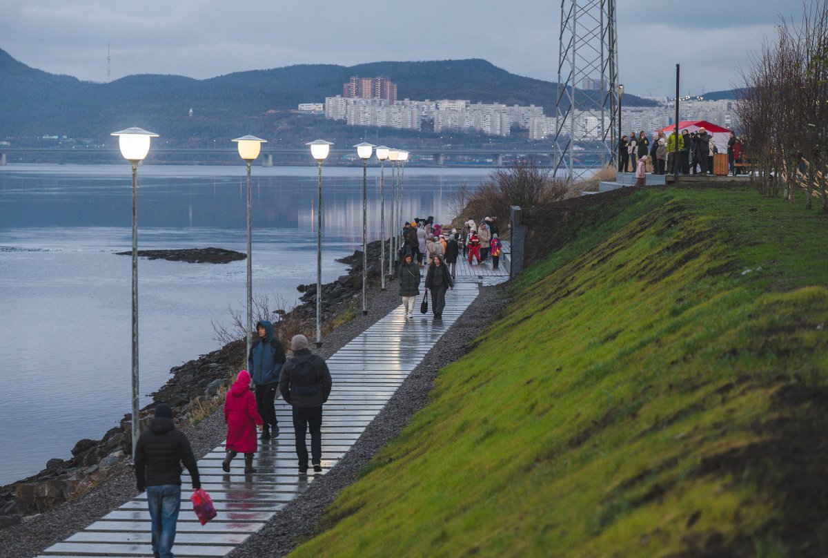 Как сообщили в областном правительстве, к уже установленным на набережной игровым комплексам, скамейкам и лежакам прибавились амфитеатр, благоустроенная прогулочная зона и несколько видовых площадок. Каждый элемент благоустройства учитывал самобытный колорит Заполярья. Кроме того, территорию облагородили деревьями и кустарниками, приспособленными к суровому арктическому климату.