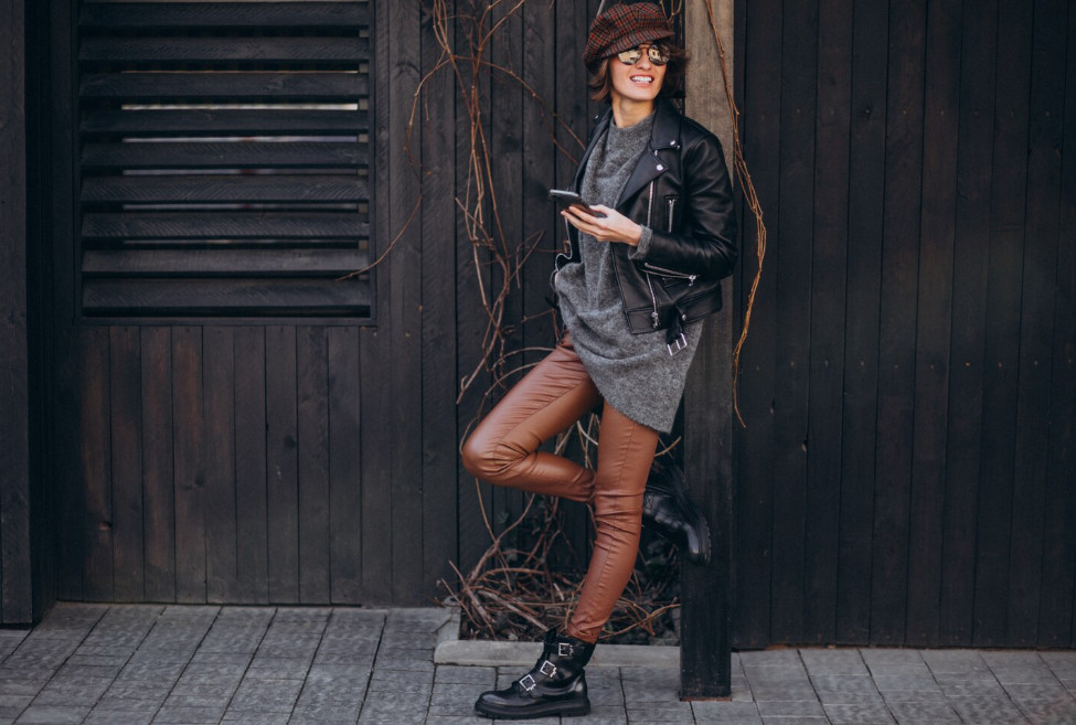 Ещё хитами сезона являются вельветовые и кожаные брюки. Вельвет придаст образу винтажный шарм, кожаные модели защитят вас от ветра и добавят шика. Для фигуры типа «яблоко» отлично подойдёт прямой крой с высокой посадкой. Будьте на высоте, нося их с шерстяными пуловерами или блузками.