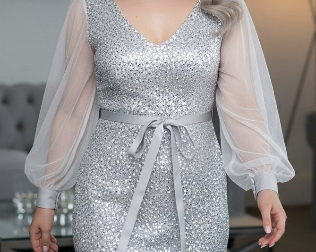 Платье с пайетками и полупрозрачными рукавами