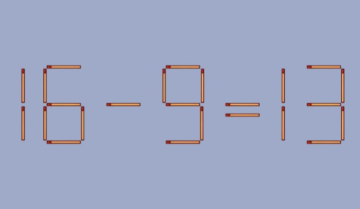 Посмотрите на равенство со спичками. В нем имеется ошибка. Надо переставить 1 спичку, чтобы оно стало правильным.