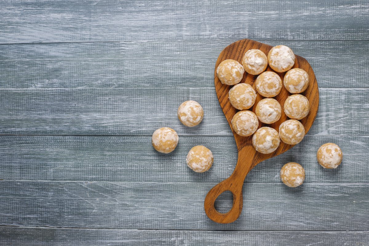 После этого из смеси крема и печенья надо слепить шарики. Их можно обвалять в печенье, какао или кокосовой стружке.