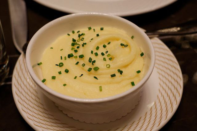 Как только картофель сварится превращаем его в пюре, добавляем 300 мл молока и 50 г сливочного масла.