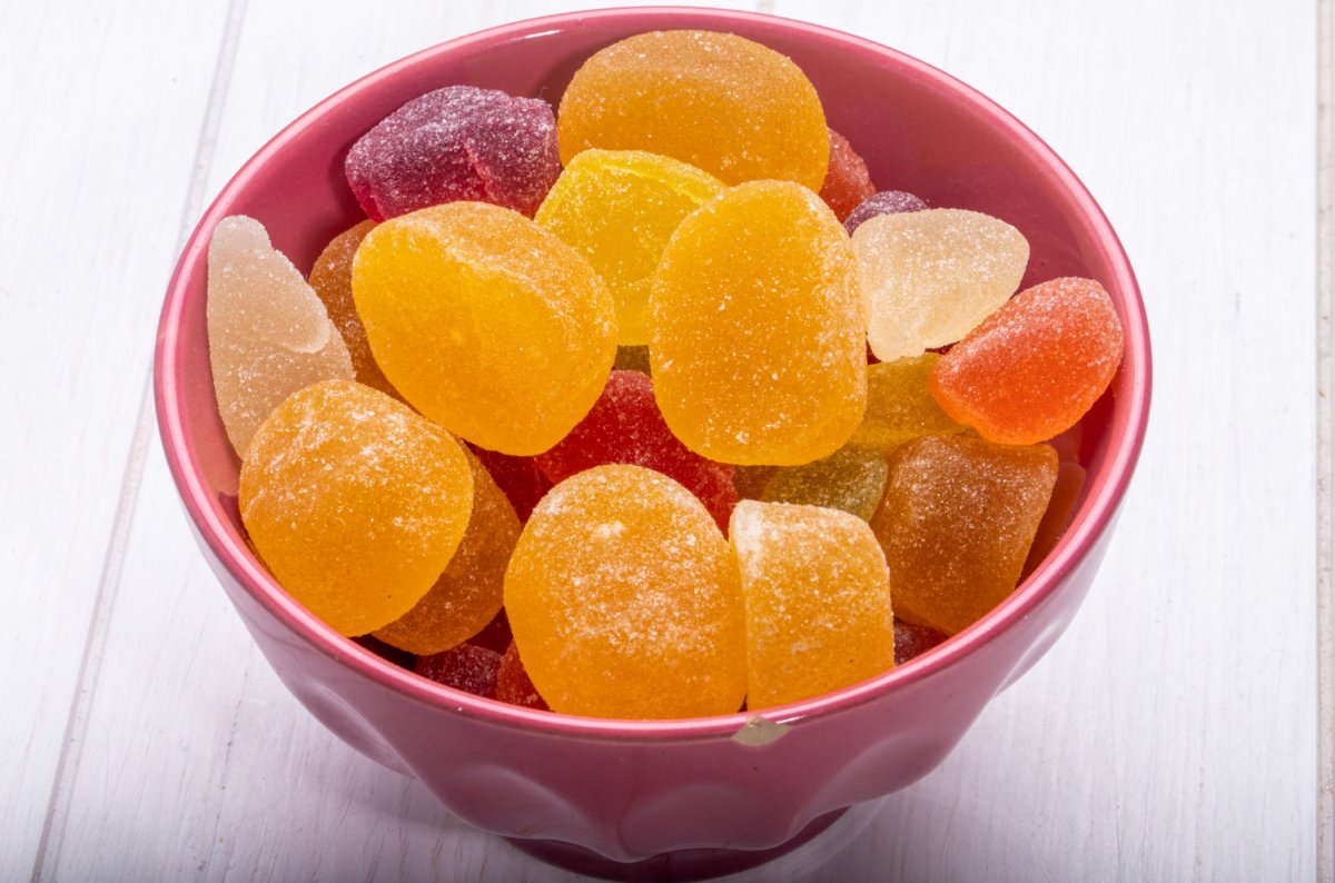 Высыпать агар-агар в полстакана воды и оставить на 20 минут. Вылить сок в кастрюлю, добавить сахар и «настой» агар-агара. Довести до кипения, варить минуту и помешивать. Убавить огонь, добавить жмых, варить ещё 5 минут. Разлить жидкость по формочкам и убрать в холодильник на полчаса. Такой мармелад хранится всего пару дней, но вы не заметите, как съедите его гораздо раньше.