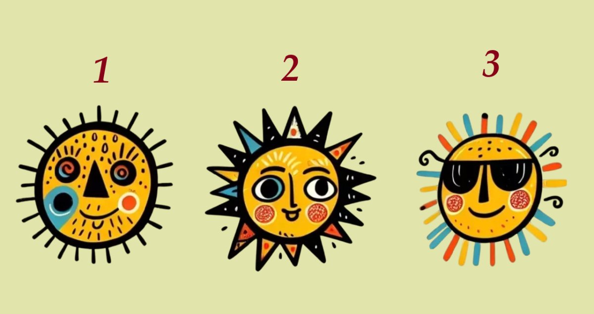Сегодня в нашем распоряжении яркий тест, выбираем Солнце. На изображении показаны три необычных варианта, какой из них вас откликается сильнее? Приготовьтесь узнать свои скрытые желания.