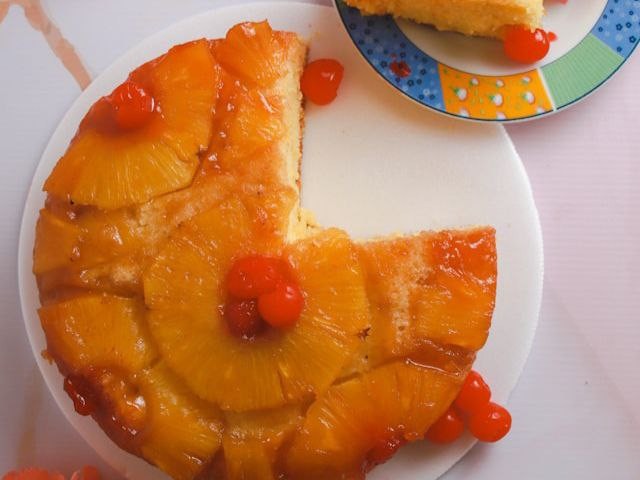 Как только верх пирога станет твёрдым, переворачиваем его с помощью тарелки и держим на огне ещё минут 15.