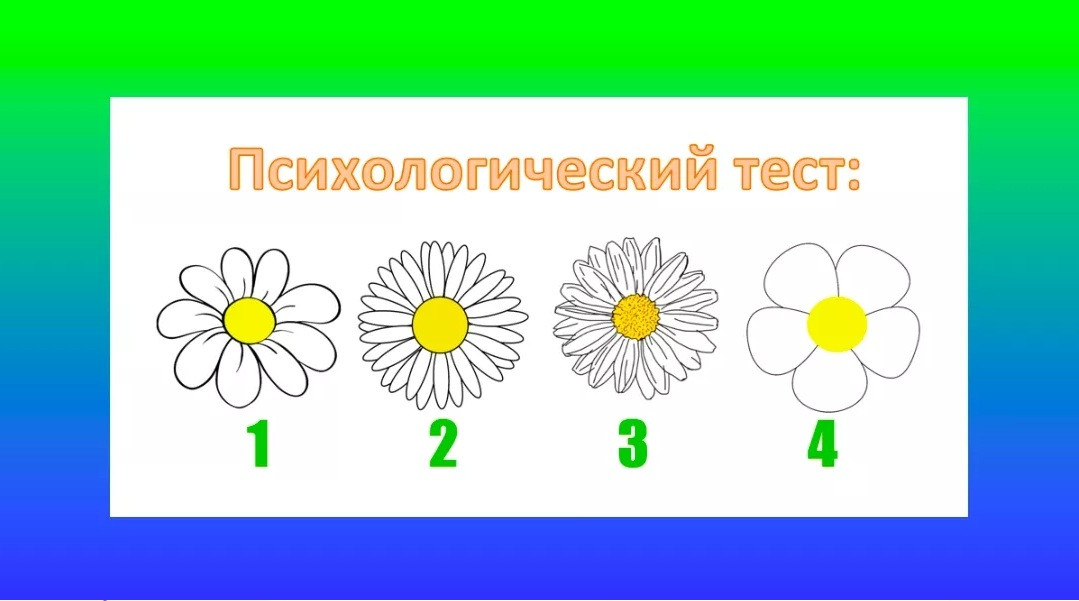 Взгляните на рисунок, симпатичные ромашки всегда помогали найти ответ на важный вопрос. Какая из них вам кажется самой красивой? Разберемся в вашей психике и особенностях характера.