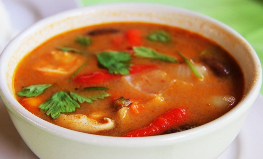 Ингредиенты: 800 гр. мяса на кости (говядина, курица, свинина), 3,5 литра воды, 400 гр. квашеной капусты, 5 картофелин, 1 морковь, 1 луковица, 2 лавровых листа, 1 ст. л. растительного масла, соль и красный перец — по вкусу. Для подачи — сметана и укроп.