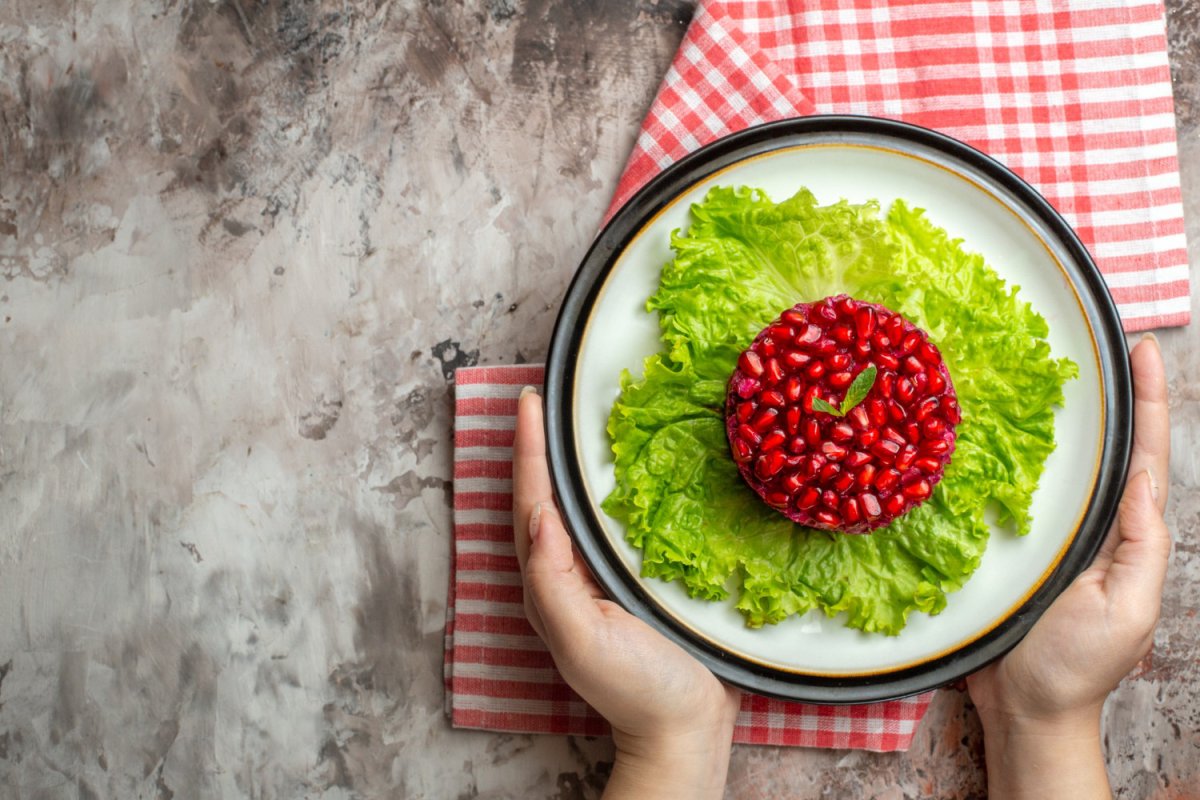Для его приготовления вам потребуется отварная говядина, свёкла, картофель, морковь, репчатый лук, зёрна граната, а также смесь майонеза и сметаны.