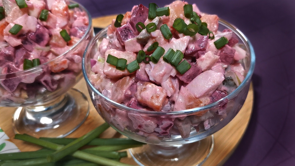 Каждый Новый год на столе красуются традиционные салаты — оливье, шуба и мимоза. А что если привнести изюминку в проверенные годами блюда? Рецептом салата «Северный» поделился канал «Розовый баклажан».