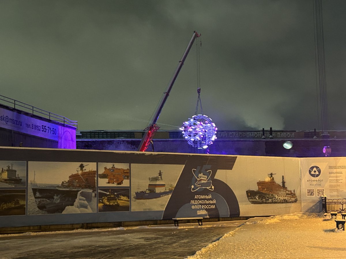 На территории мурманского морского порта появилась временная мультимедиа-инсталляция. Проект создан платформой Дзен с художественным объединением PANTERRA и приурочен ко Дню атомного ледокольного флота России.