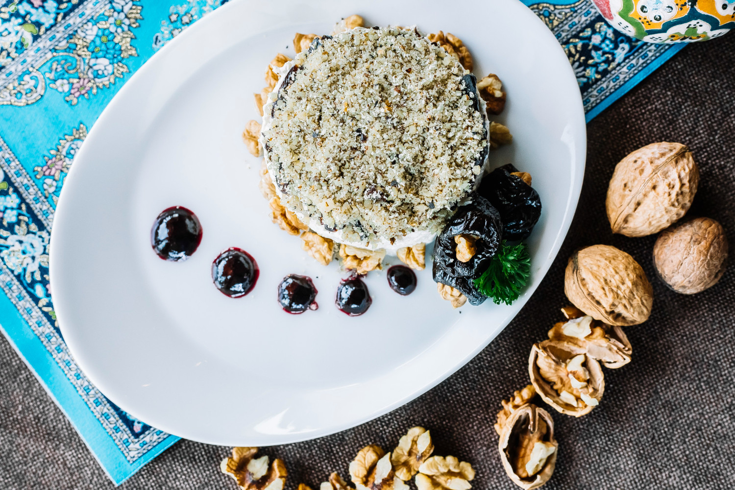 Возьмите копчёную грудку, чернослив без косточек, ананасовые консервы, твёрдый сыр, яйца, грецкие орехи и немного майонеза для заправки.