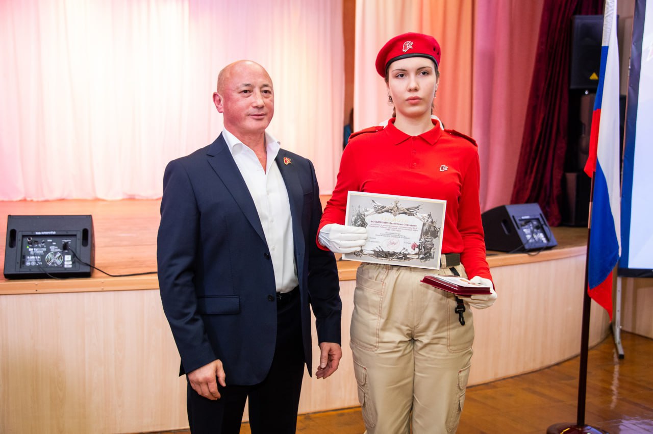 По традиции перед награждением юнармейцы стали участниками военного парада, посвященного 80-летию Великой Победы.