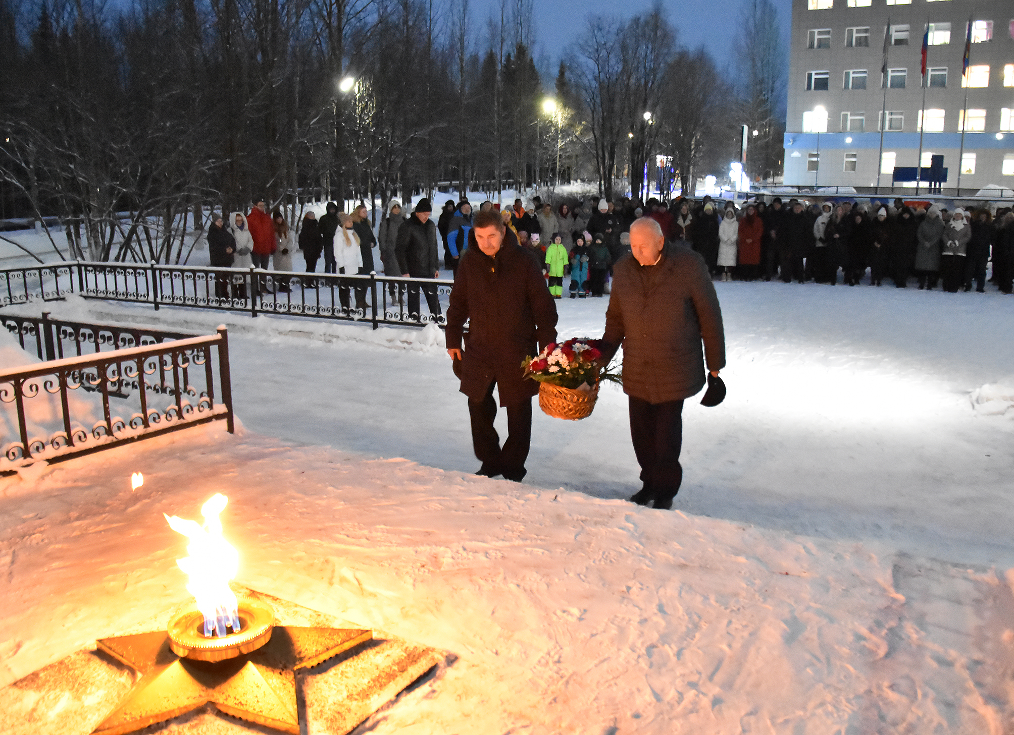 После зажжения Огня Памяти каждый желающий смог возложить цветы к мемориалу. К подножию памятника гвоздики легли и от самых юных участников — воспитанников детского сада «Сказка». Их присутствие стало живым воплощением мысли о «священном долге перед прошлым и обязательстве перед будущим».