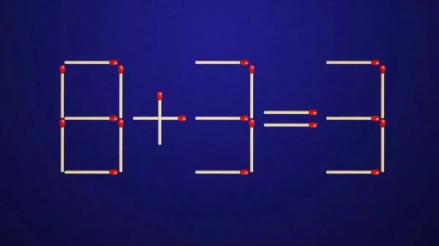 Перед вами уравнение из спичек: 8+3=3. В этом равенстве есть очеивдная ошибка. Чтобы её исправить, вам можно переставить только одну спичку.