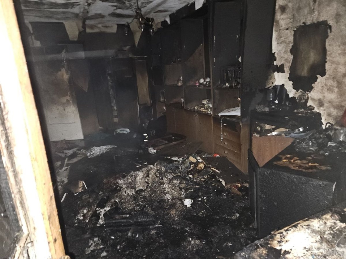В 4.18 утра пожар в квартире потушили. Все жилье полностью закоптилось продуктами горения. Диван и мебель сильно обгорели.