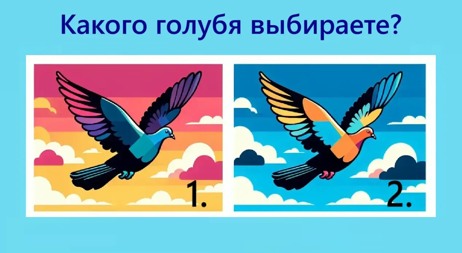 На иллюстрации вы видите двух ярких голубей, чей полет освобождает вашу душу? Такие тесты можно отнести к мини-гештальт-экспериментам, потому что выбор вызывает эмоцию, а уже она раскрывает потребность.