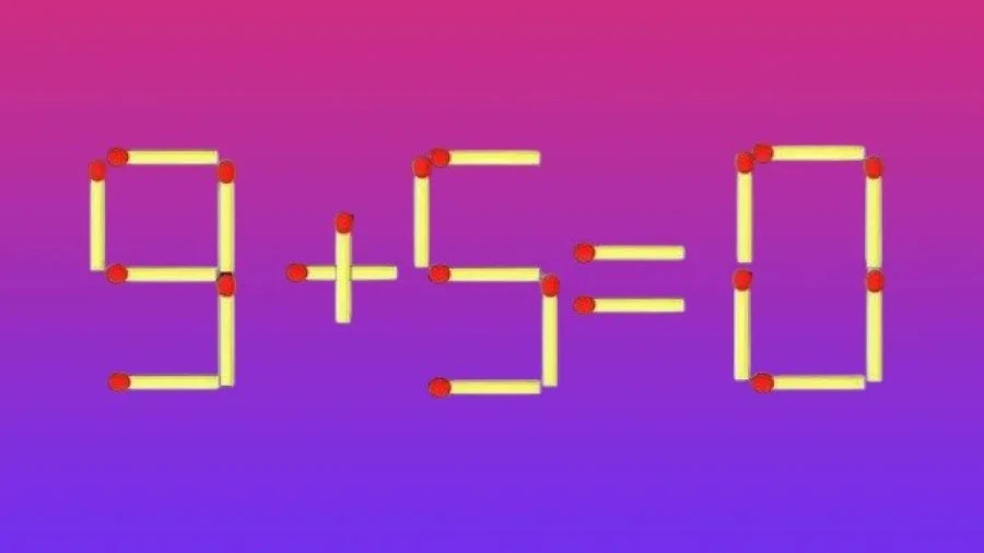 Перед вами из спичку выложено уравнение: 9+5=0. Очевидно, оно неправильное. И именно вам нужно сделать его верным.