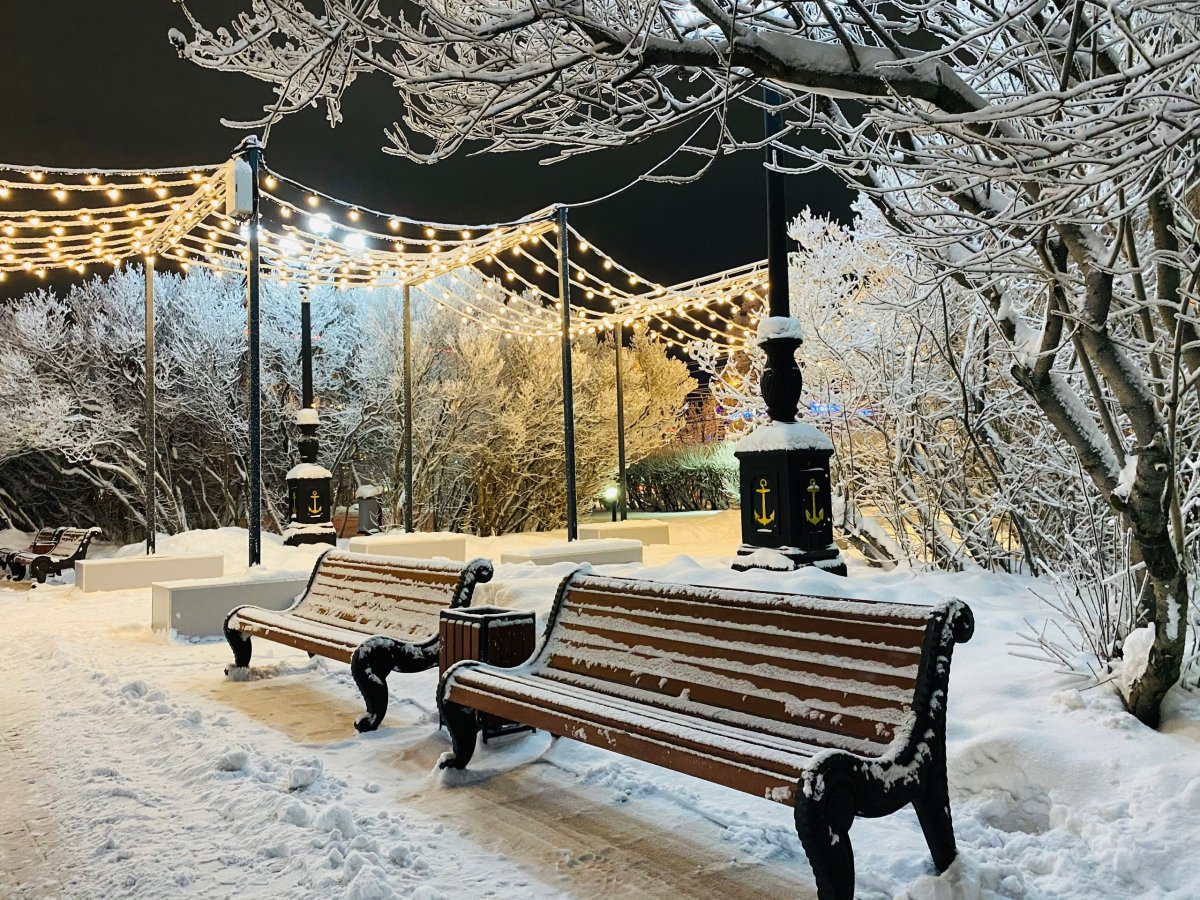 В субботу в 6 часов утра в Мурманске царила по-настоящему новогодняя погода — всего -2 градуса. Из-за полного безветрия снежные хлопья плавно падали на землю. Такая же температура воздуха была в Ловозеро, Мурмашах и Полярном. В Никеле, Янискоски и Териберке на это время столбик термометра замер на отметке -3 градуса. Нулевую температуру мурманские синоптики зафиксировали в Ковдоре, Каневке, Мончегорске и Апатитах. В Кандалакше воздух прогрелся до +1 градуса.