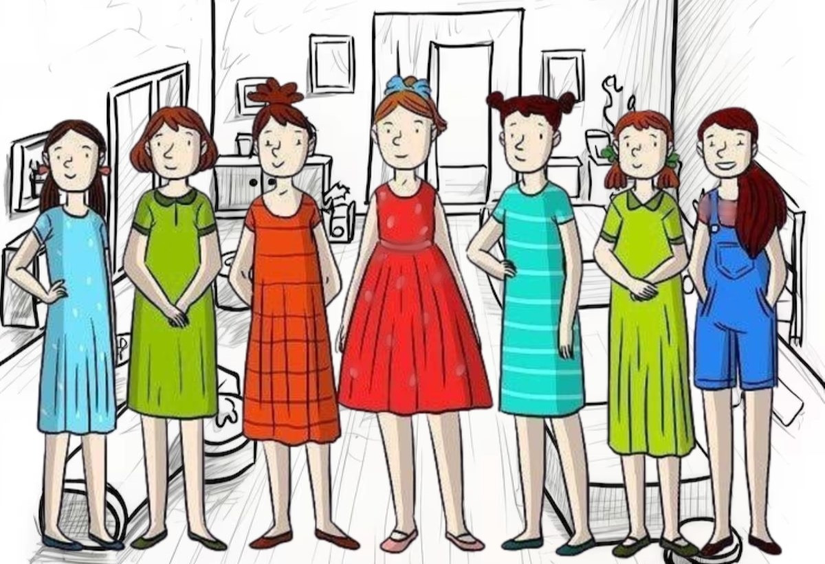 Посмотрите на рисунок с 7 сёстрами. Они живут в одном доме и решили заняться делами. Первая девушка собирается почитать книгу, вторая — заняться кулинарией, третья — поиграть в шахматы.