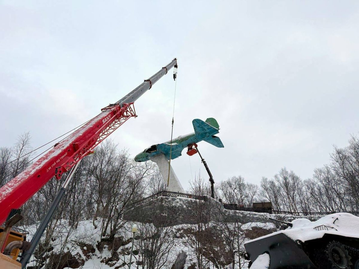 Самолёт снимают с постамента для проведения реставрации. Восстановление крыльев и фюзеляжа будет осуществляться в Санкт-Петербурге. Работы проведут под руководством опытного аваиреставратора и поисковика из Ленинградской области Виктора Дудина.