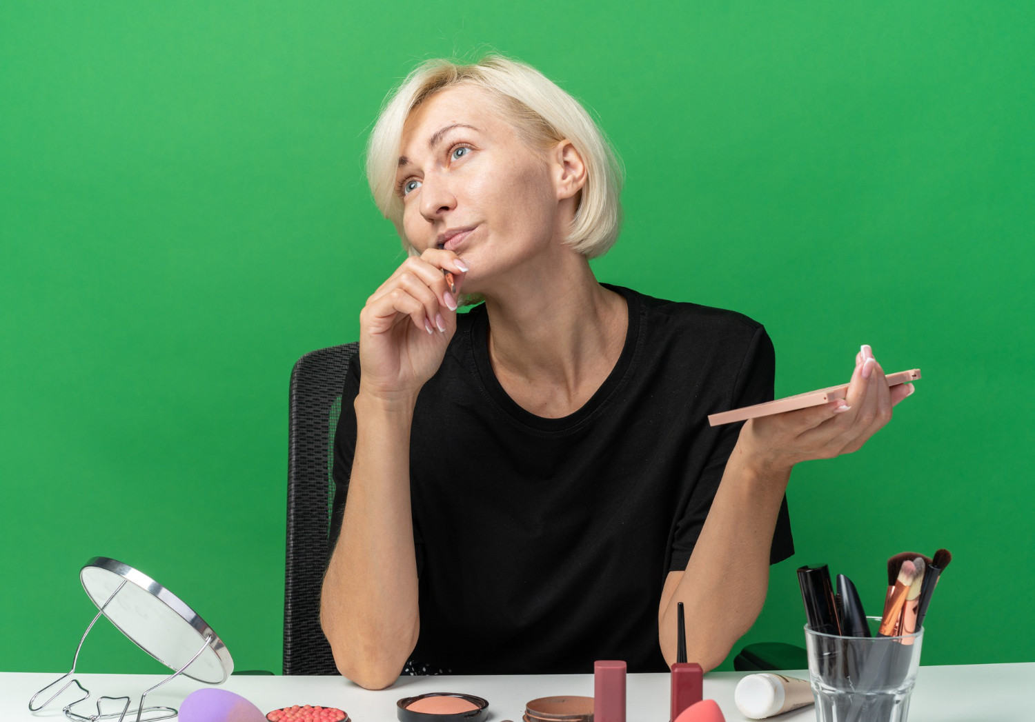 Ни в коем случае не пробуйте старые техники. В любом возрасте смотрится ужасно — знаю не понаслышке. Яркие тени и густой тональник, которые были в моде 20-30 лет назад, сейчас только подчёркивают морщины, на вас будто маска. Лучше попробуйте простые лёгкие текстуры. Хорошо подходят матовые или сатиновые финиши, приглушённые натуральные оттенки.