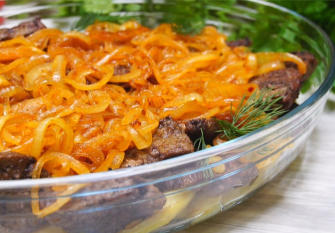 Для рецепта годится и говяжья, и куриная печень — вторая, естественно, получается нежнее