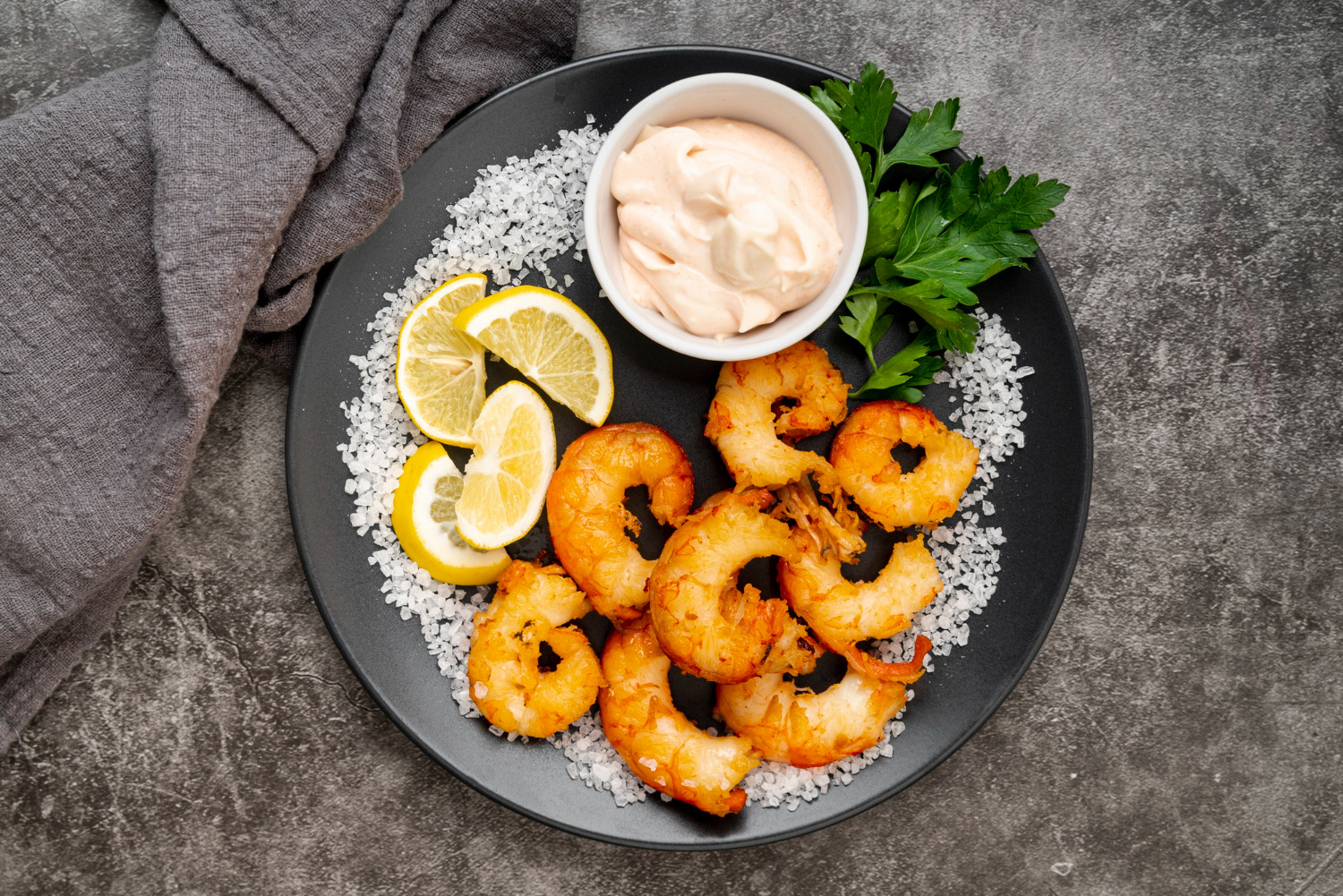 Предлагается три рецепта на выбор. Для креветок в минералке: смешать 100 г муки, 50 г кукурузного крахмала, 150 мл ледяной минеральной воды, 1 яйцо, соль, перец.
