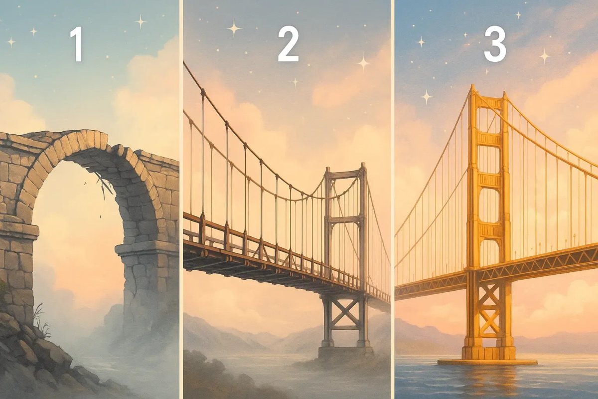 На рисунке показаны три моста, на каком из них вы готовы очутиться прямо сейчас? Визуальные экспресс-тесты давно используют в психоанализе, выявляя скрытую мотивацию и подавленные желания.