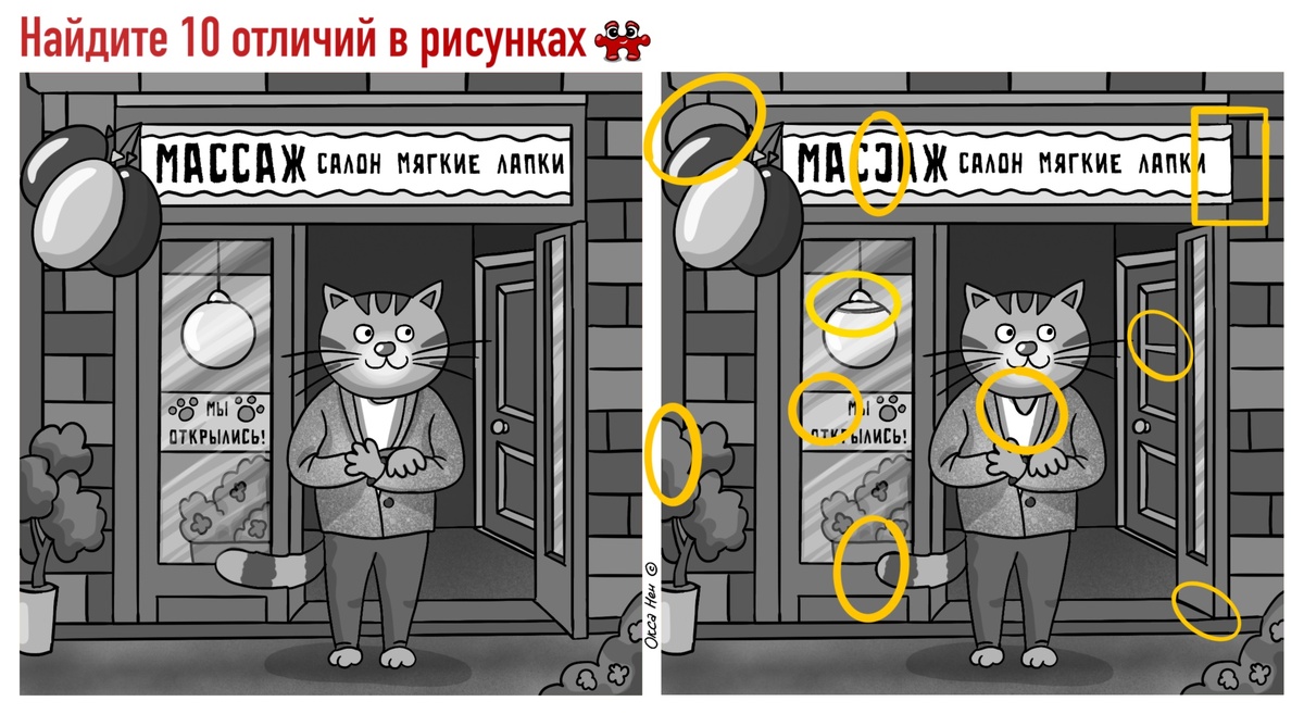 Картинки занимательные и залипательные, но вам их нужно рассматривать только с одной целью — найти, чем они отличаются.