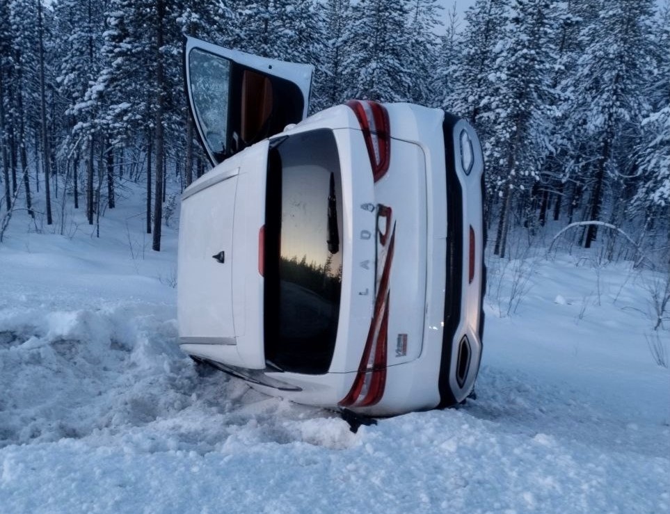 Сообщение о столкновении по касательной двух автомобилей на 1349 км трассы «Кола» поступило в экстренные службы в 10.58. После ДТП с участием легковых автомобилей Peugeot 407 и LADA Vesta, последний съехал в кювет и там опрокинулся на бок.