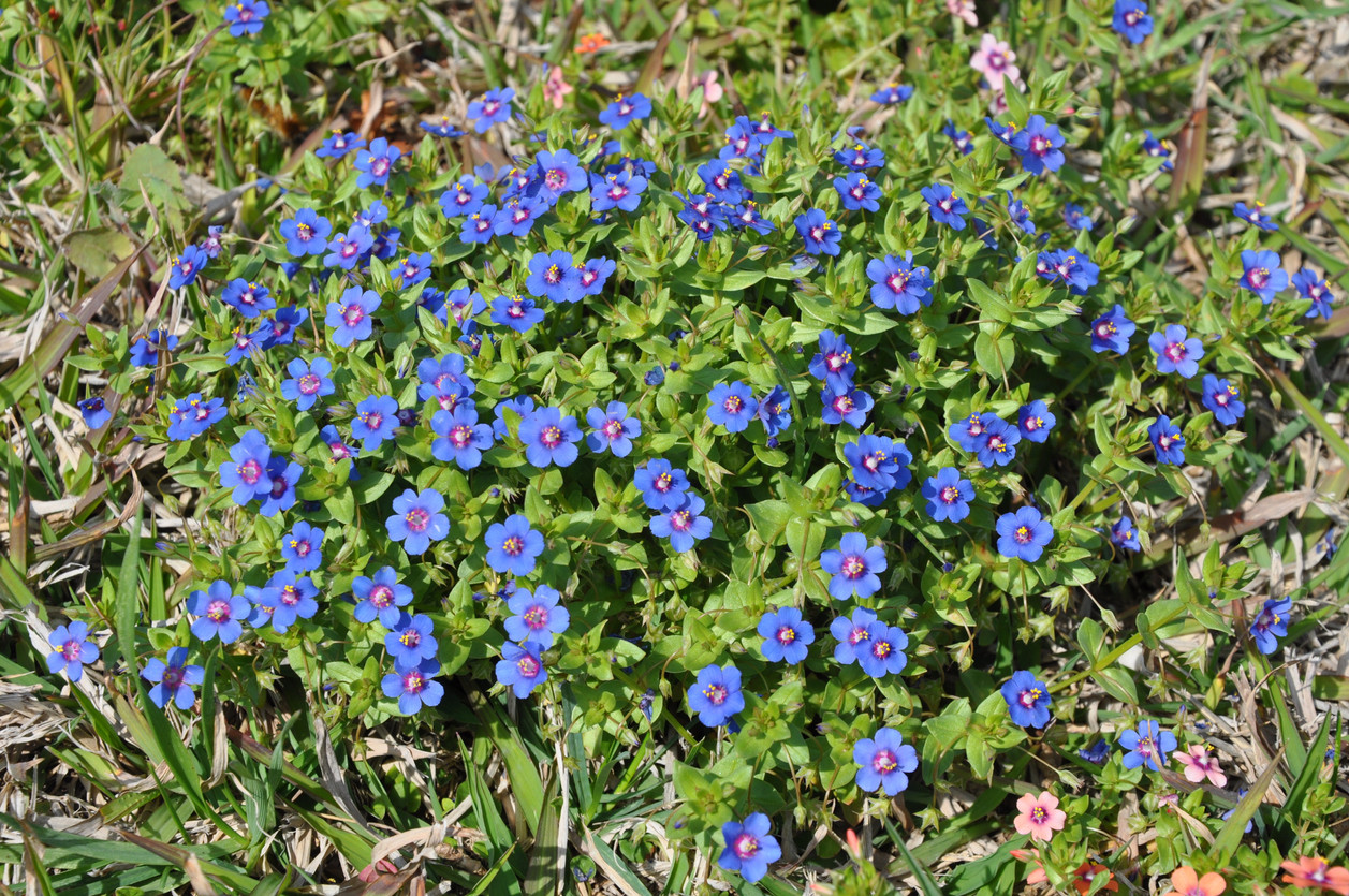 Второй мой фаворит — анагалис. Сначала покупала его черенками на рынке, но последние годы выращиваю из семян. Да, они крошечные, но ничего сложного: сею в горшок, чуть присыпаю песком, накрываю плёнкой. Всходы появляются примерно через 10 дней. Главное — вовремя снять укрытие и не перелить.