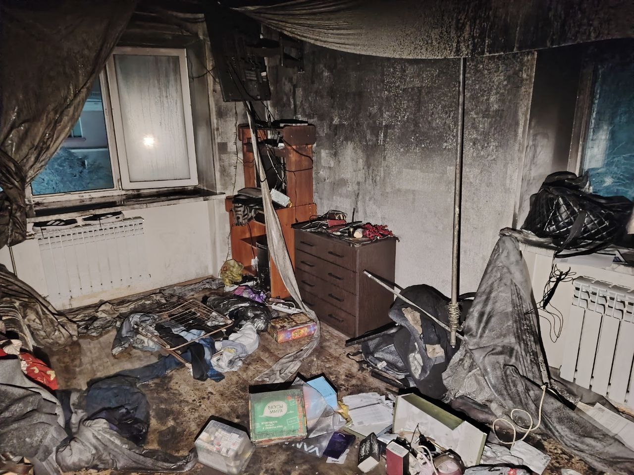 Справиться с возгоранием удалось в 5:52. На кухне сгорели мебель и бытовая техника. Однокомнатная квартира оказалась полностью закопчена. Последствия возгорания вышли далеко за пределы своего очага — копоть была и в подъезде, и в квартире этажом выше.