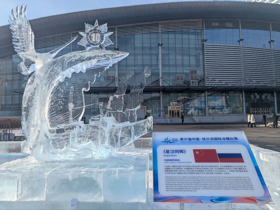 Скульптура появилась в рамках Международной выставки экономики льда и снега. Она открылась 6 января в Харбинском международном выставочном центре. Сюда съехались эксперты из более чем 20 стран, представлены около 300 крупных компаний со всего мира. На выставке представлено различное оборудование для снежно-ледовой индустрии. Кроме того, проходят и форумы, на которых, например, обсуждают цифровизацию зимних видов спорта и развитие туризма в целом. Участие в открытии выставки приняли и члены мурманской делегации. Они также посетили ряд харбинских предприятий.
