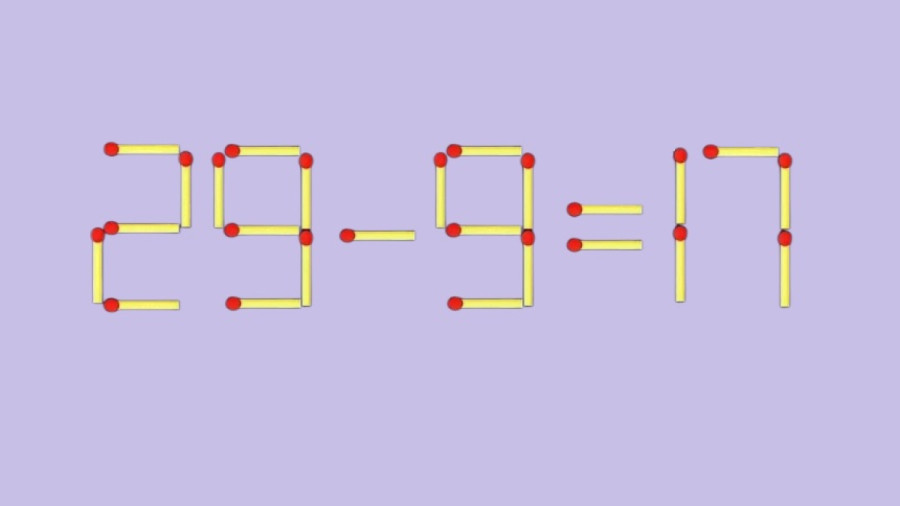 Перед нами равенство: «29-9=17». Но в нем закралась ошибка. Всего одна спичка находится на не своём месте. Внимательно всматриваемся в картинку и анализируем их расположение.