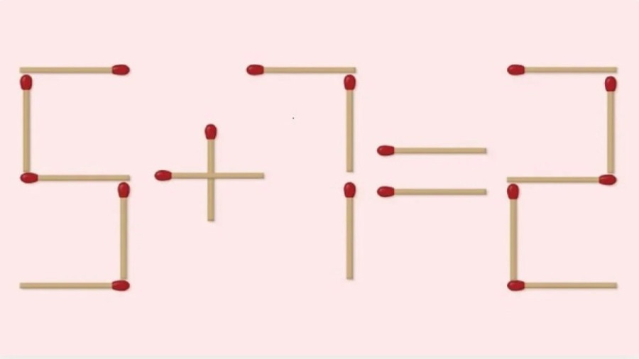 Итак, перед нами равенство: «5+7=2». Несложно догадаться, что оно полностью неверное. Для того, чтобы получить правильный пример, необходимо передвинуть лишь одну спичку.