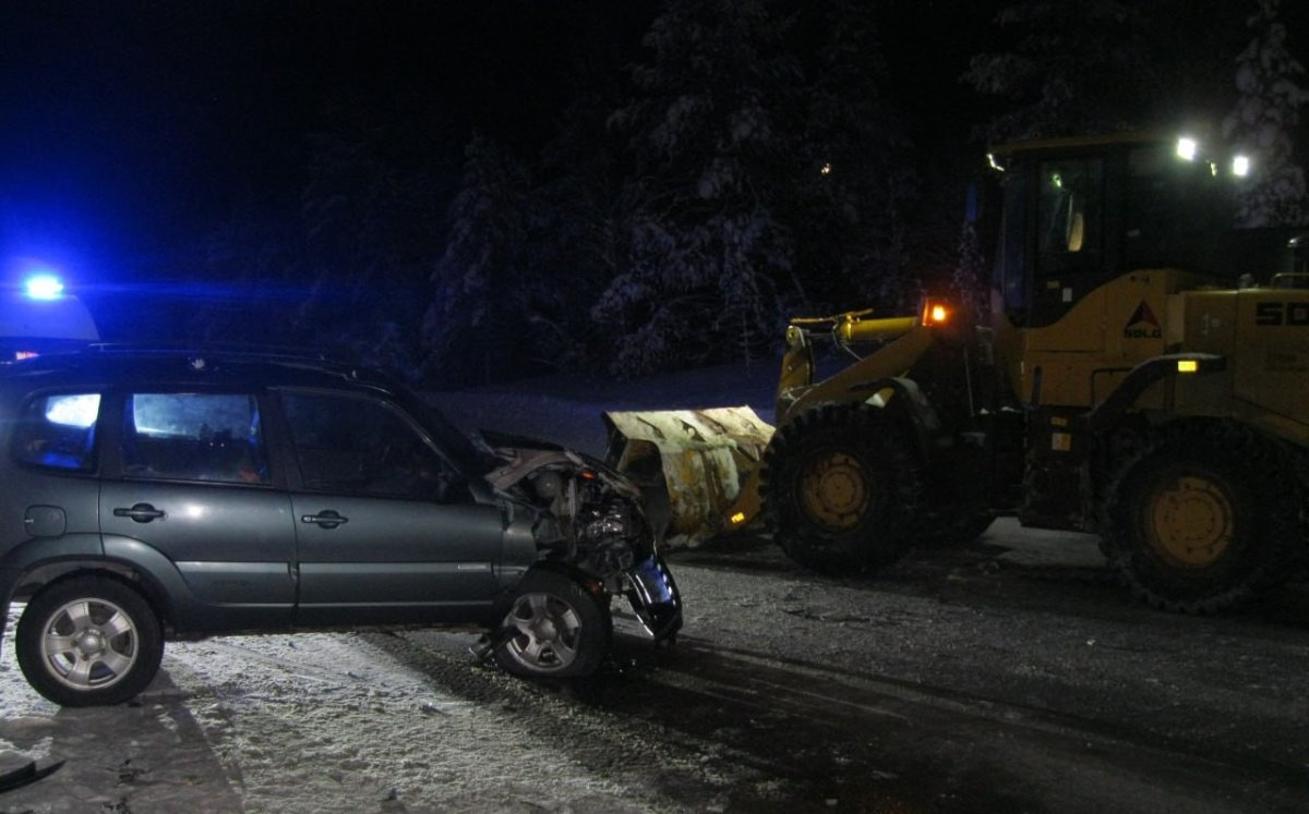 Одного человека госпитализировали после ночного ДТП под Кандалакшей. В ночь на вторник 27 января на трассе столкнулись по касательной «Шевроле Нива» и трактор-погрузчик. О дорожной аварии в экстренные службы сообщили в 2:42.