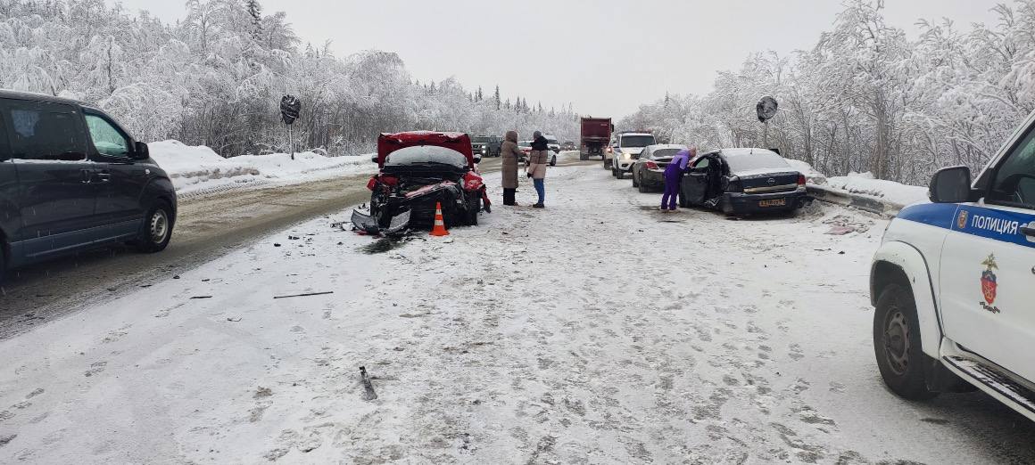 Днём 6 февраля на участке автодороги Апатиты - Кировск 30-летний водитель автомобиля Opel Astra потеряла контроль над управлением, после чего машину занесло на «встречку». Затем иномарка столкнулась с автомобилем Lada Niva и следом движущимся за ним Kia Soul. Водителя Opel госпитализировали в реанимационное отделение.