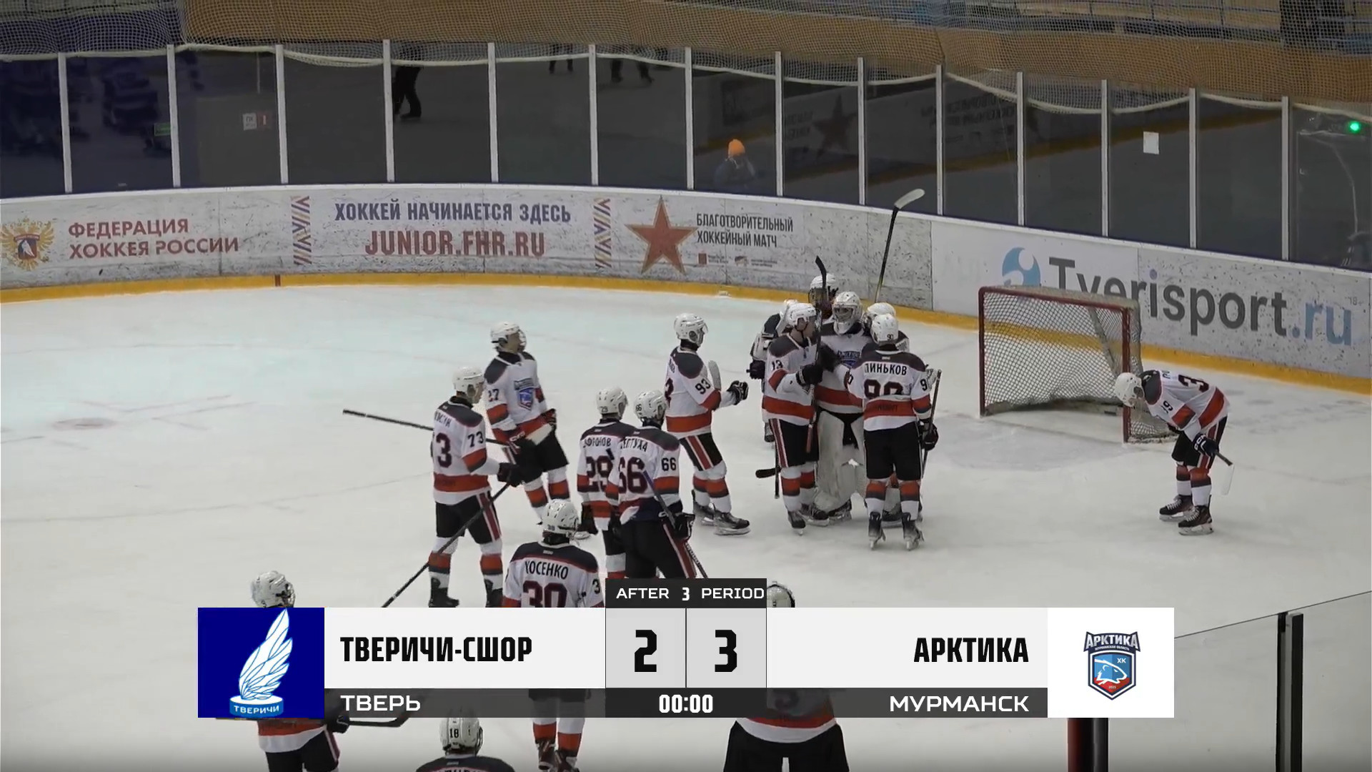 Итоговый счёт 3:2 в пользу команды из Мурманской области. Прошла игра завершилась победой ХК «Тверичи» в овертайме.