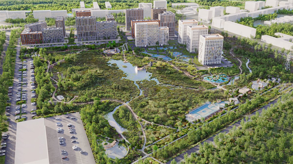 Ключевая идея доработанной концепции — минимальное вмешательство в экосистему. Центральную часть парка, где расположен болотный ландшафт и озеро Варничное, сохранят в естественном виде. Все активные функции — общественные пространства, спортивные и прогулочные зоны — будут вынесены к периметру, на участки с устойчивыми грунтами. Вглубь природной зоны планируется лишь аккуратная интеграция лёгких пирсов и смотровых площадок, позволяющих наблюдать за природой, не нарушая её баланс.