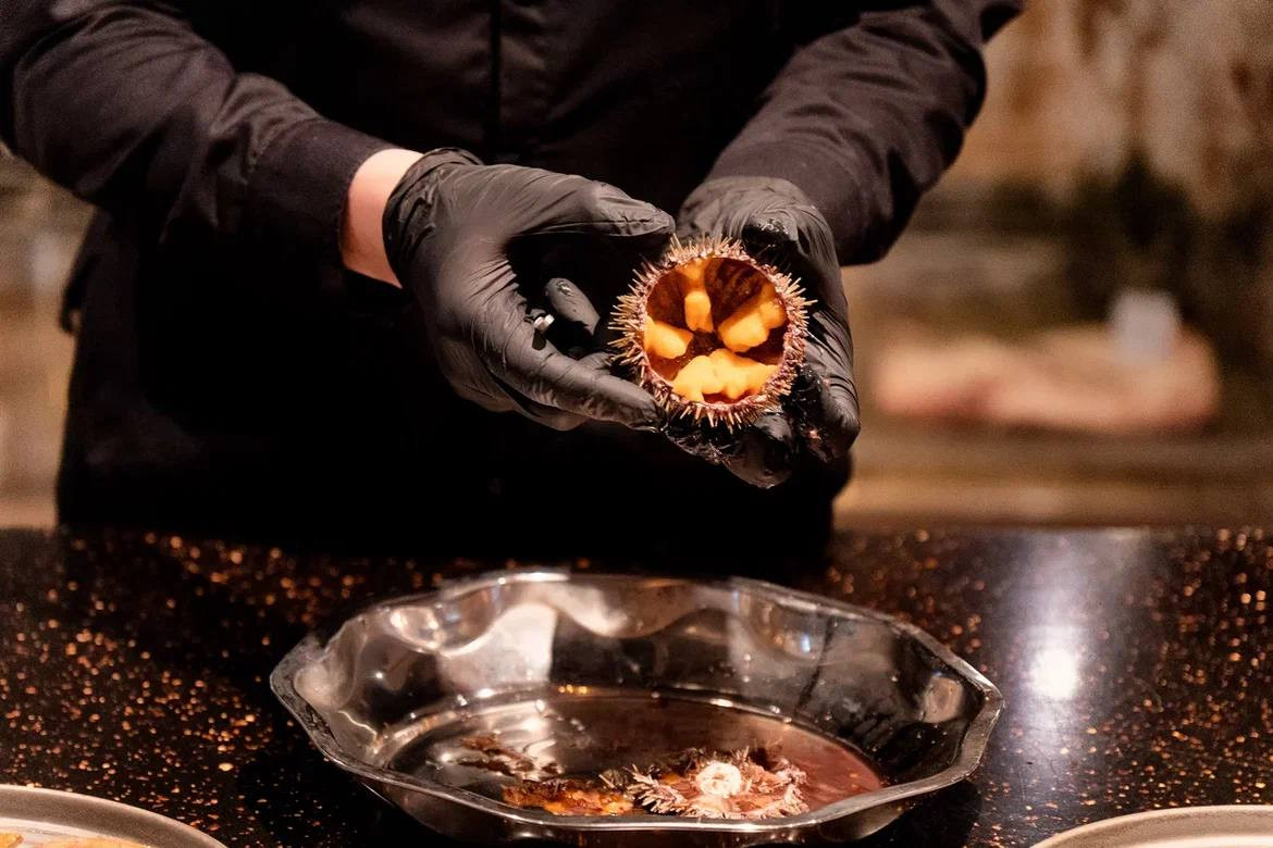 Первый проект принадлежит шеф‐повару и гиду агентства авторских путешествий «Север и точка» Алексею Котельникову. Он предлагает необычный мастер-класс под названием «Ёж за ЗОЖ». Участникам предлагается попробовать живого морского ежа в гармоничном сочетании с напитками и другими продуктами.