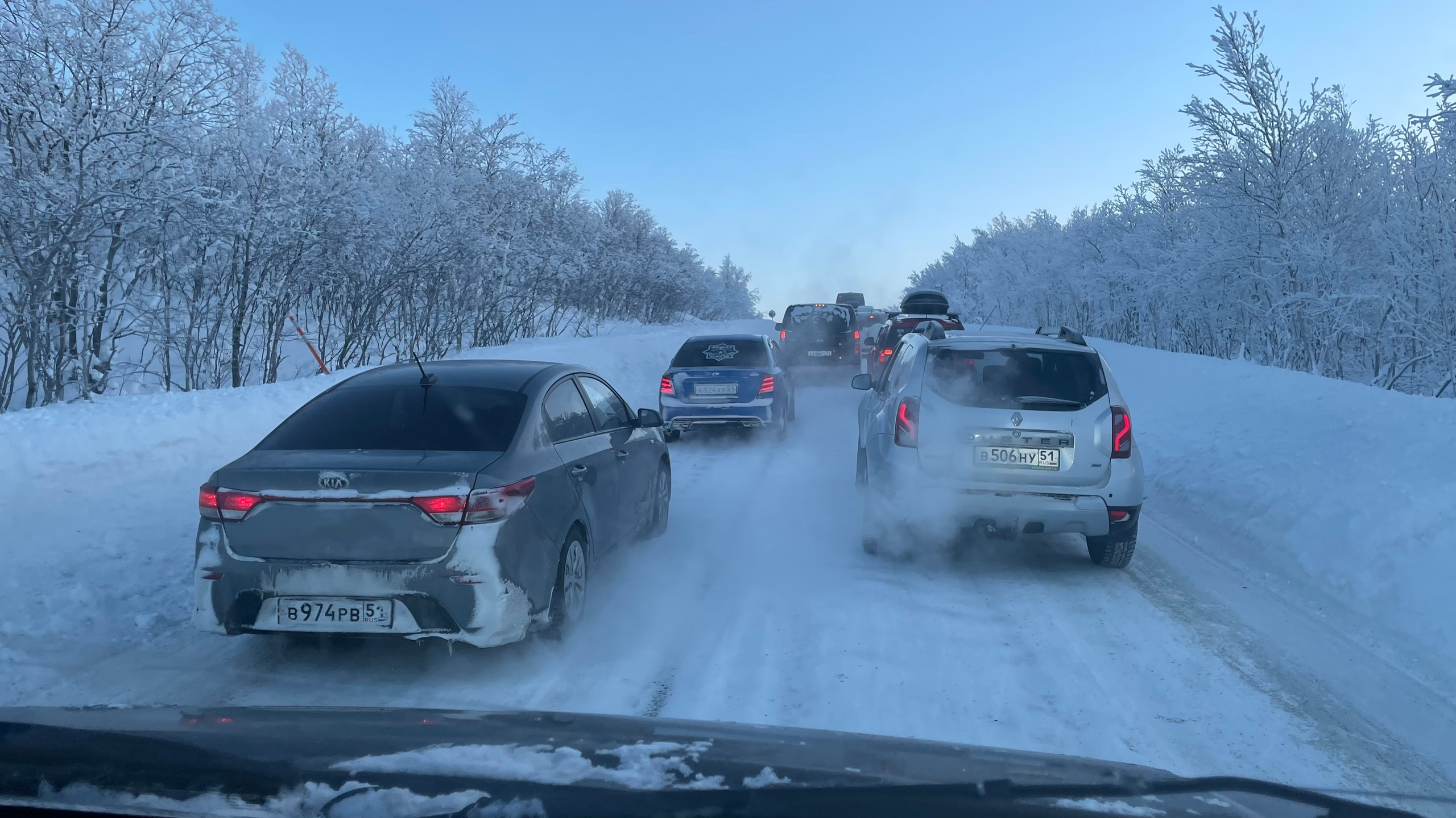 Ситуация на дороге Териберку остаётся непростой. Из-за погодных условий единственная транспортная артерия к популярному у туристов месту всё ещё закрыта, хотя периодически предпринимаются попытки организовать движение транспортных средств в составе колонны в сопровождении спецтехники. Как сообщалось ранее, накануне погрузчик, который обеспечивал продвижение по заснеженной дороге, сломался — у него лопнуло колесо. После чего ситуация обострилась. Что происходит на трассе в данный момент — в материале «Би-порта».