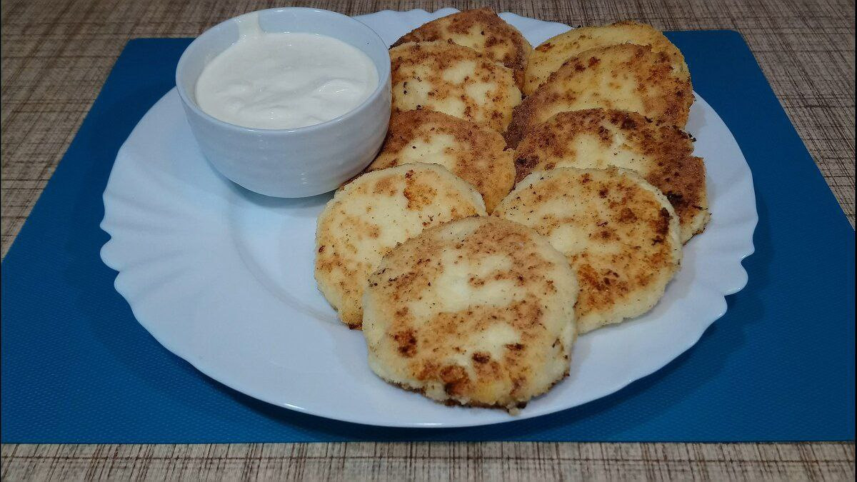 Разогрейте сковородку с маслом и формируйте сырники ложкой, выкладывая их внутрь. Обжаривайте с обеих сторон по паре-тройке минут, пока они не подрумянятся.