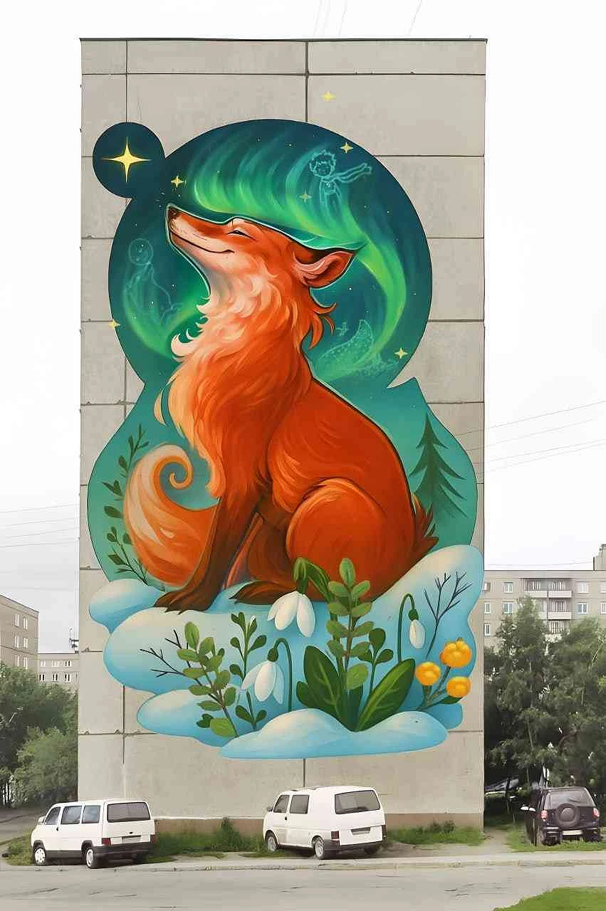 На фасаде дома № 32 по улице Капитана Орликовой в Мурманске планируют изобразить лису на фоне полярного сияния.